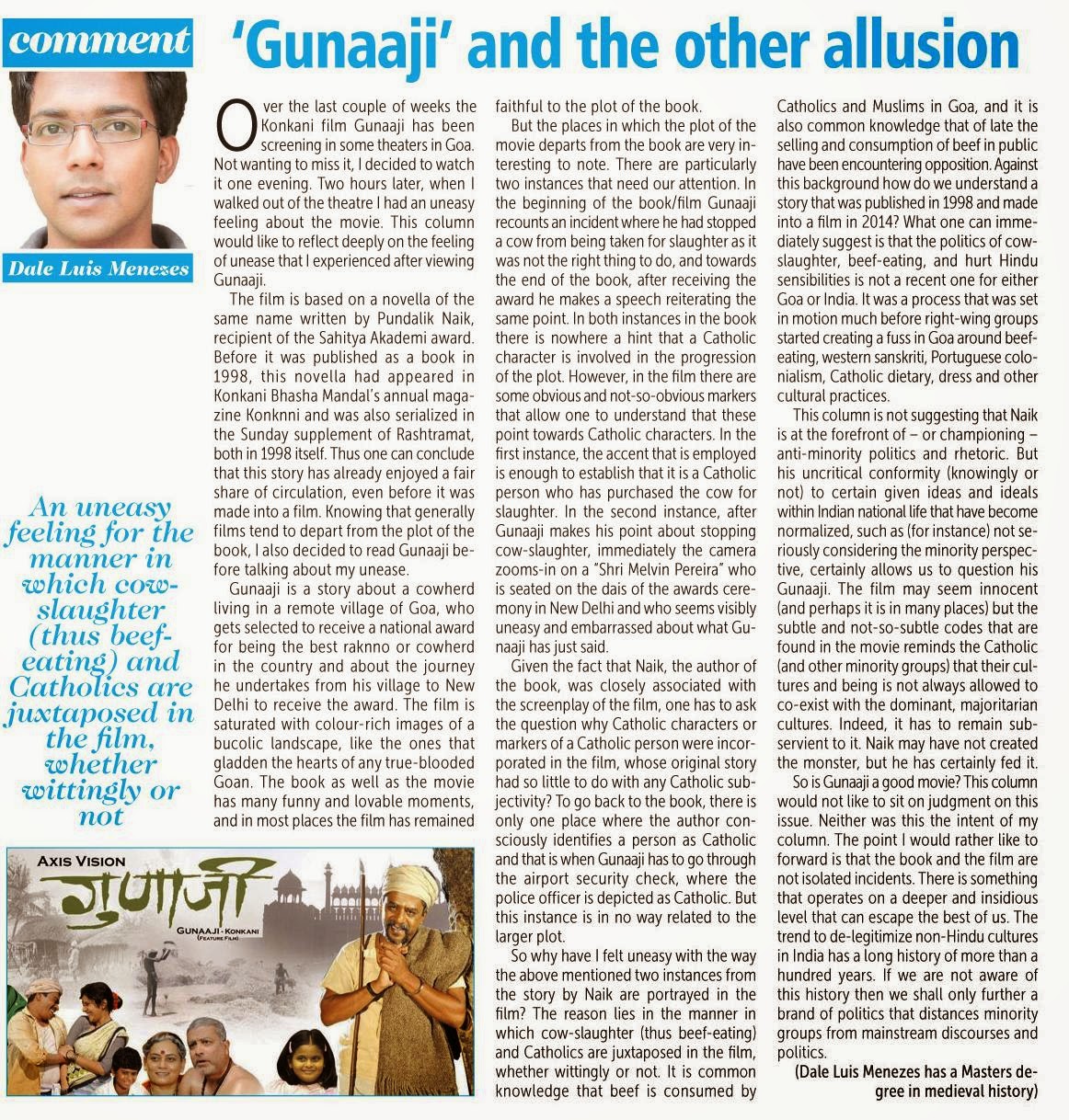 (First published in O Heraldo, dt: 24 July, 2014)